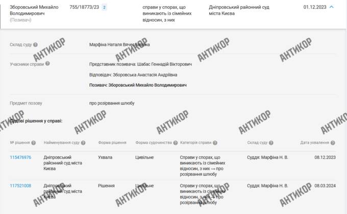 Чоловік з точно таким же ім’ям, прізвищем і по-батькові, як і номінальний власник казино «Cosmobet», у березні 2024 року розлучився з дружиною. Ці дані можна знайти в судовому реєстрі.